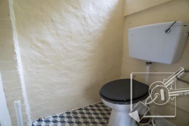 Low level w.c. double glazed window to the side.